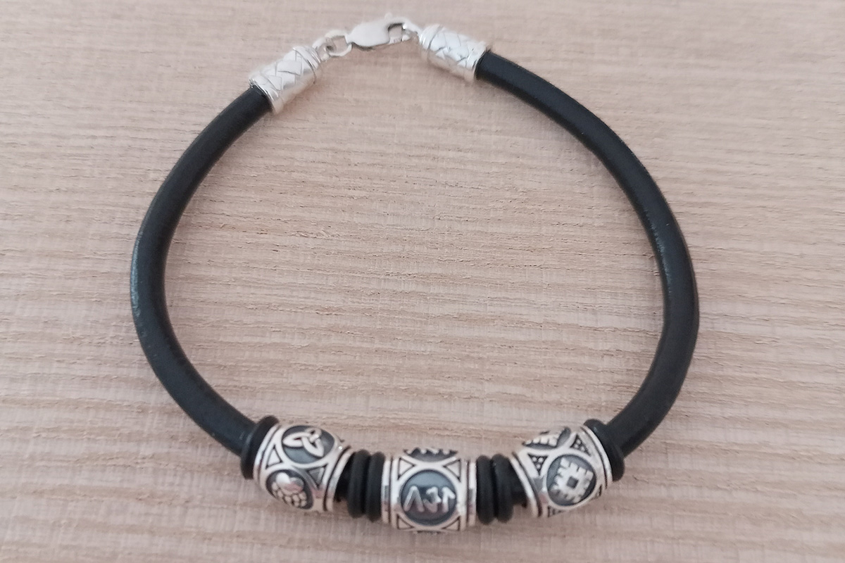 Кожаный браслет (4мм) с шармами